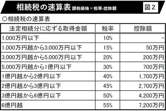 <図1 相続税の総額の求め方>と<図2 相続税の速算表>の計算式にあてはめていくことで相続税の総額が導き出されます。但し、ここで算出する「相続税の総額」はあくまで仮の税額です。