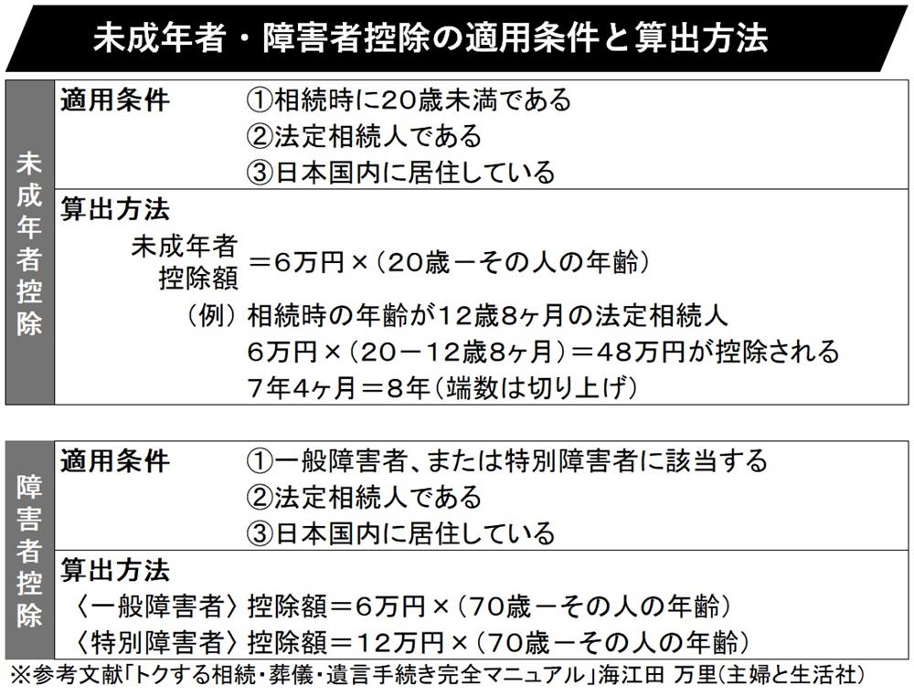 税額控除には<図5 6種類の税額控除>があります。控除する順番はAからFへという順番が決められています。Cの未成年者控除との障害者控除に限っては、控除しきれない額について、控除額を他の相続人に振り分けることができます。相続税の計算では「控除」という言葉が何度も出てきます。たとえば、この6種類の「税額控除」とは求められた「税額」から直接金額を差し引くことができる控除のことです。逆に、「基礎控除」や「生命保険金の非課税控除」などは、それぞれの税額を求める前の財産の価格から差し引く控除のことです。また、相続税の速算表にも別の控除があります。