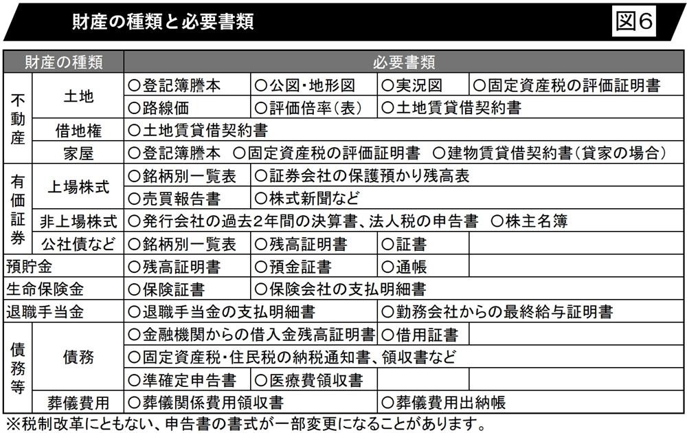 相続税の申告・納税期間は、相続が発生した日の翌日から10ヶ月以内です。延納、物納手続きをしない限りは申告期限内に納税しなくてはなりません。期限に遅れてしまうと延滞税が課せられたり、各種の特例、控除が利用できなくなる場合があります。10ヶ月は、一見長く思われますが実際の相続が始まってみると、多くの手続きを行われなければならず、あっという間に過ぎてしまいます。期限内に申告・納税をするためには、あらかじめ必要書類をそろえておくなど、事前の準備をしておきましょう<図6参照>。